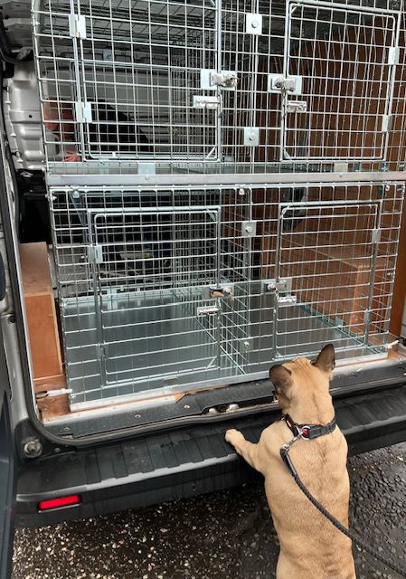Dogs will be picked up and dropped off in our fully equipped van with secure cages, ventilation and lighting.